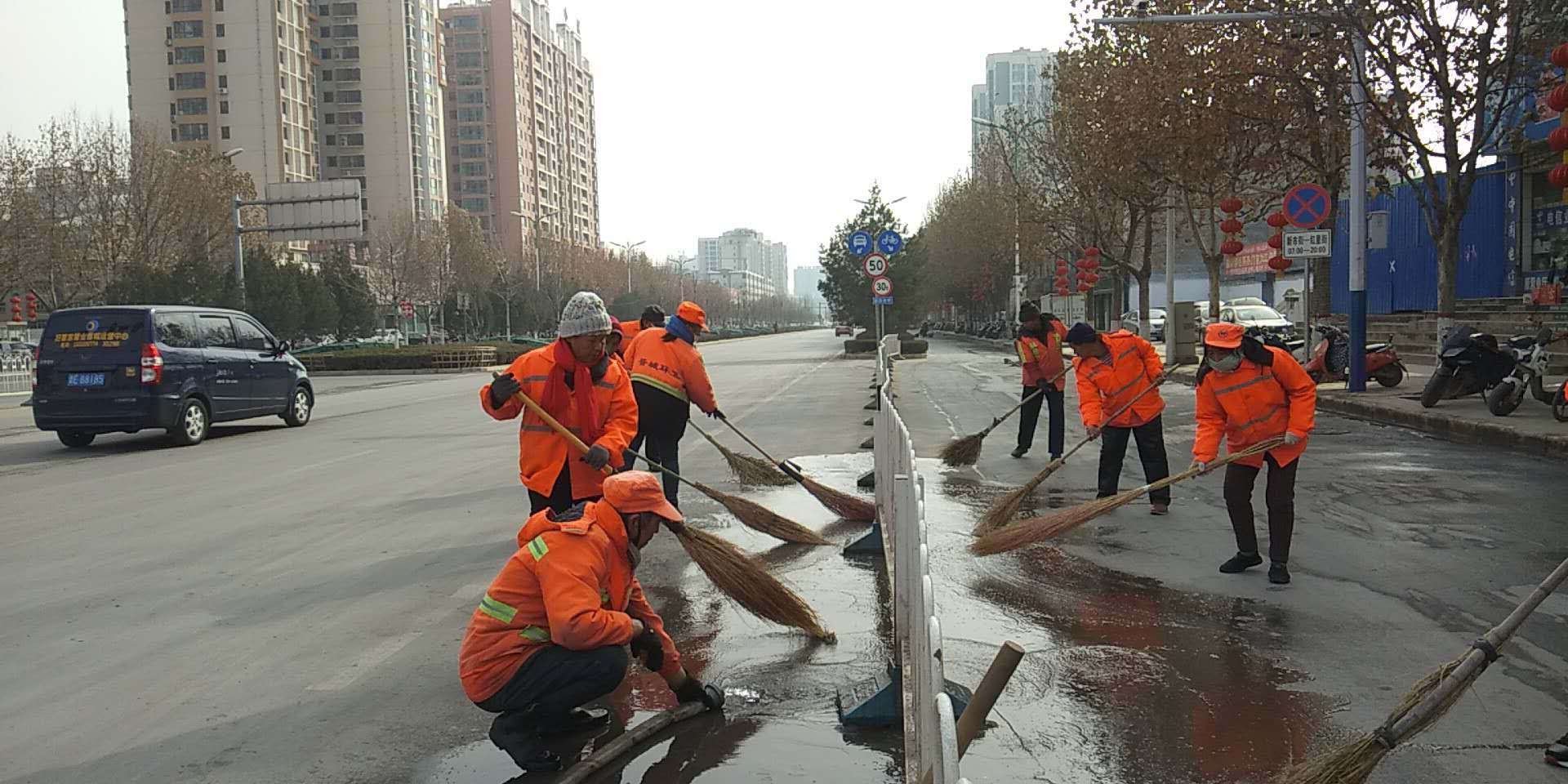 不畏嚴(yán)寒,清掃路面積雪
