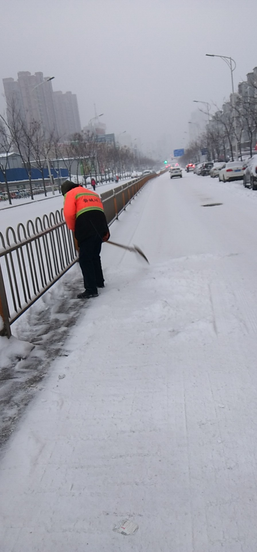 為保障大家出行安全,認(rèn)真鏟除地面殘冰。