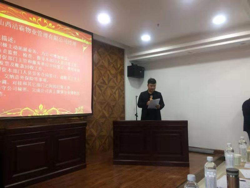 12月20日下午,晉城市潔霸清潔服務(wù)股份有限公司開展中層管理人員競聘演講活動,公開競聘選拔物業(yè)管理公司經(jīng)理,運(yùn)營中心經(jīng)理,清潔用品超市店長3個(gè)職位的中層管理人員。公司領(lǐng)導(dǎo)班子成員和部分管理人員出席活動。