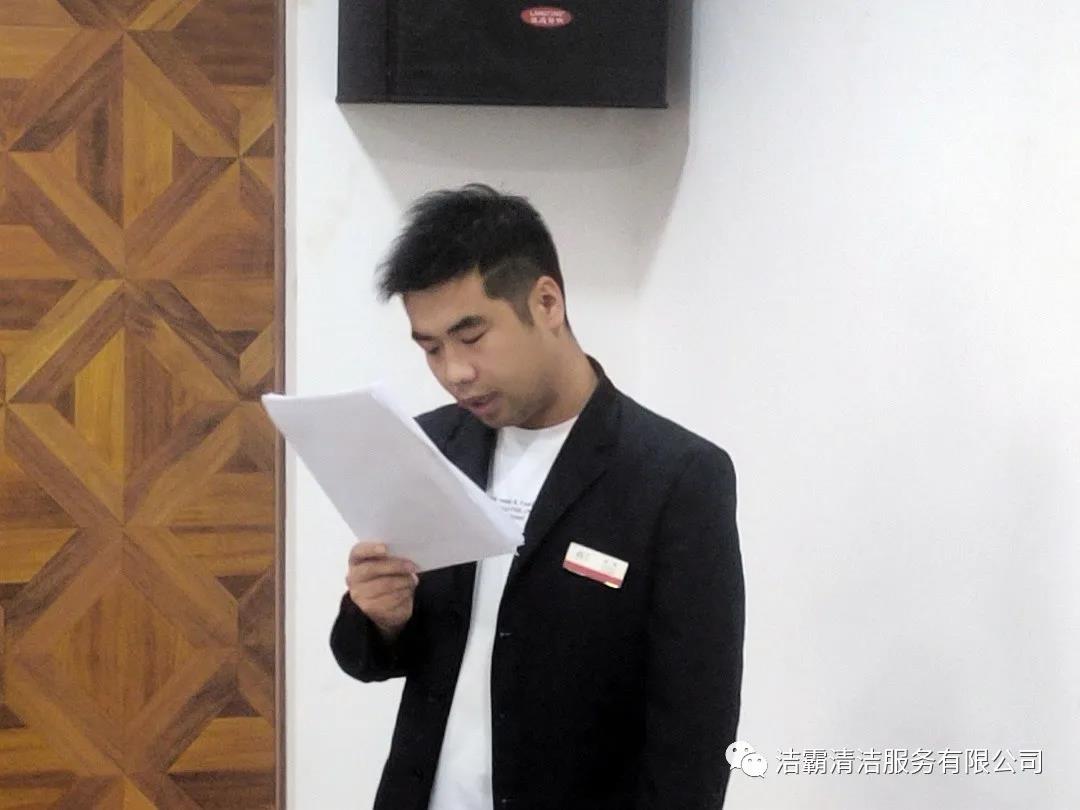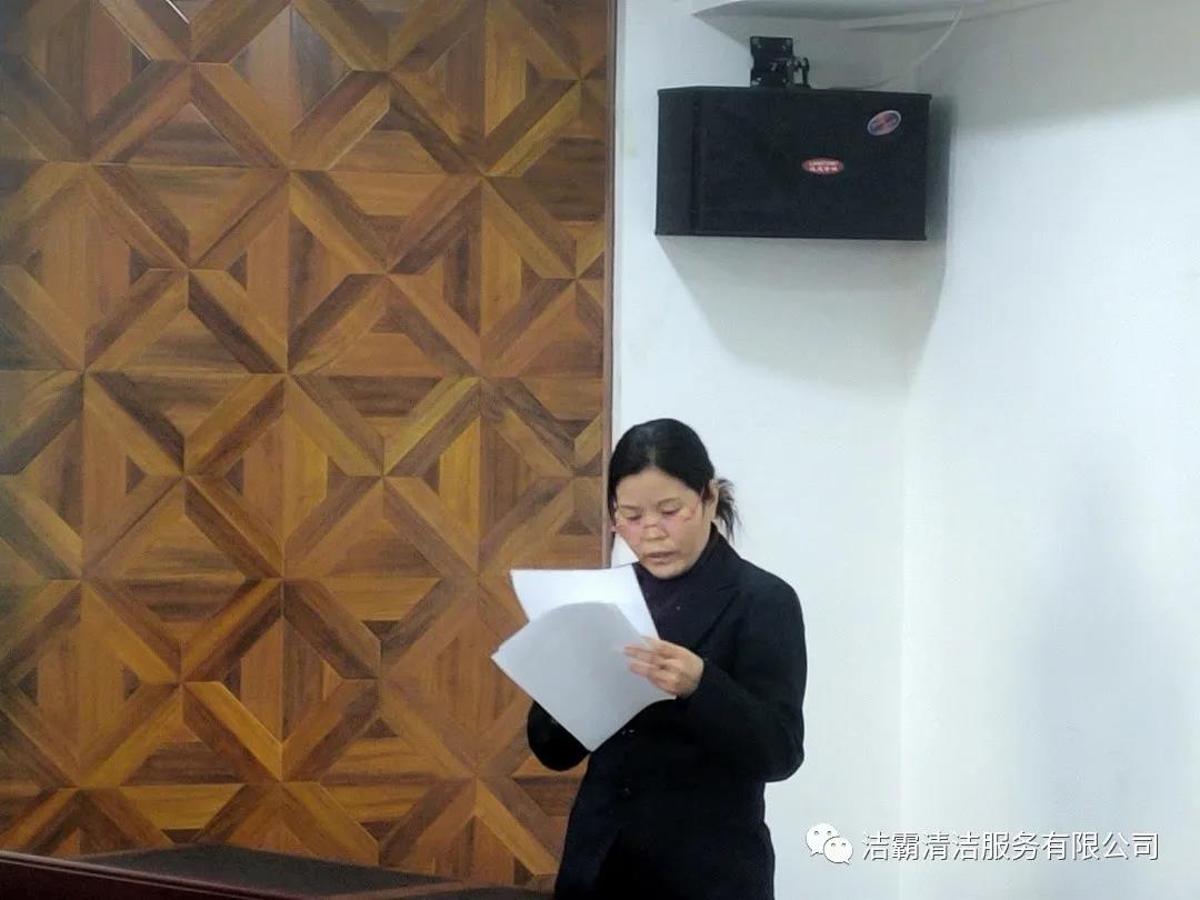 山西潔霸物業(yè)管理有限公司經(jīng)理李廣忠、會(huì)計(jì)張青霞、出納王頓花、晉城市合眾力勞務(wù)派遣有限公司經(jīng)理成濤、出納劉雨星、晉城市潔霸清潔服務(wù)股份有限公司工程部文員張陽楠、綜合辦公室車輛管理員呂衛(wèi)東、人力資源部文員呂利清、山西百潔物業(yè)服務(wù)有限公司出納王笑依次上臺(tái)作了述職匯報(bào)。