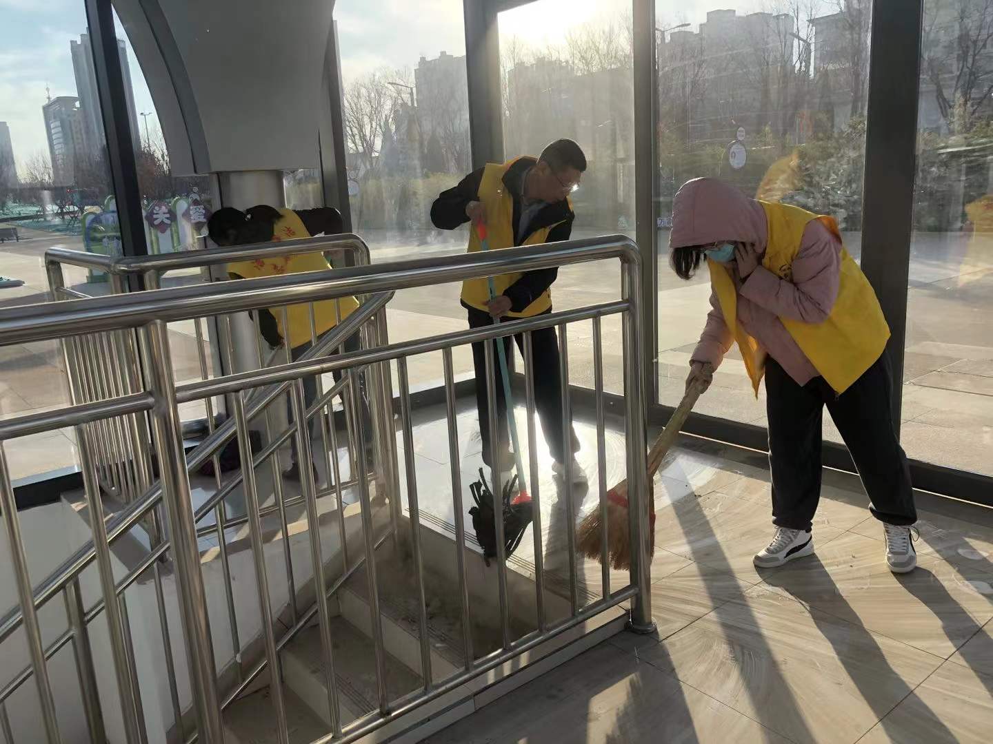 12月20日——22日,潔霸志愿者走進(jìn)金鳳凰廣場和西街泰森社區(qū),開展衛(wèi)生清潔志愿服務(wù)活動。活動中,他們身穿黃色馬甲,手拿笤帚、拖布、夾子等清理工具,有的清掃地面;有的拖洗樓梯;有的擦洗欄桿;有的撿拾煙頭、紙片;有的規(guī)范車輛擺放,以實際行動參與到文明創(chuàng)建行動中來,全力支持我市創(chuàng)文迎檢工作,爭做創(chuàng)文的宣傳者、踐行者、守護(hù)者。