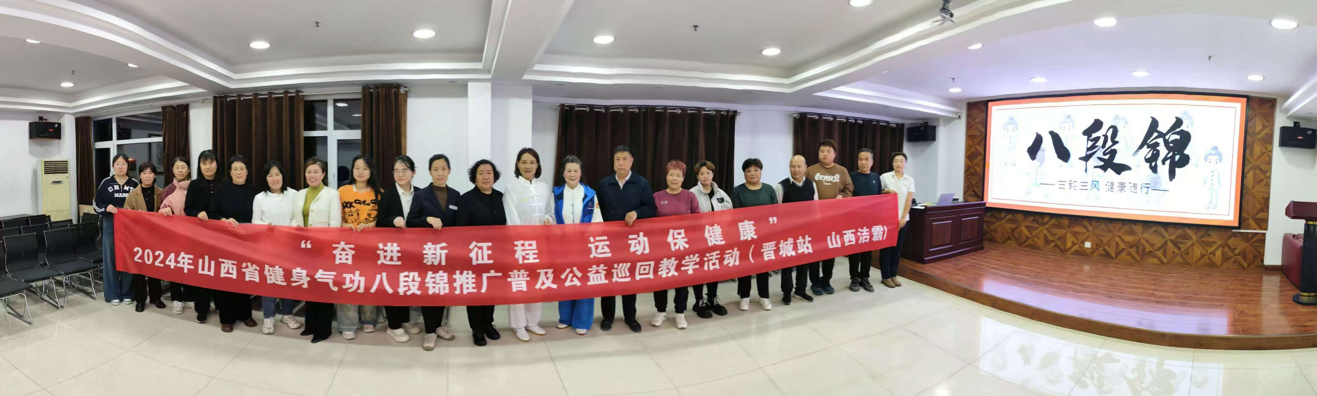 為豐富公司員工的業(yè)余文化生活,增強(qiáng)員工身體素質(zhì),10月18日,公司在活動(dòng)中心組織了一場(chǎng)別開生面的學(xué)習(xí)八段錦活動(dòng);顒(dòng)邀請(qǐng)晉城市武術(shù)協(xié)會(huì)常務(wù)副主席、晉城市武術(shù)協(xié)會(huì)健身氣功總站站長(zhǎng)馮淑珍老師授課。